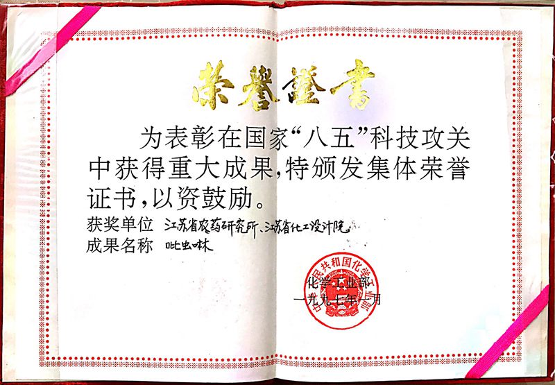 1997.1化工部國家“八五”科技攻關(guān)項目“吡蟲啉”