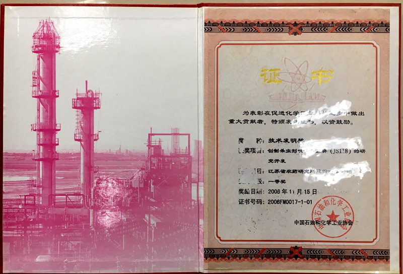 2006.11“呋喃蟲酰肼”榮獲國家工業(yè)協(xié)會“技術(shù)發(fā)明獎”一等獎