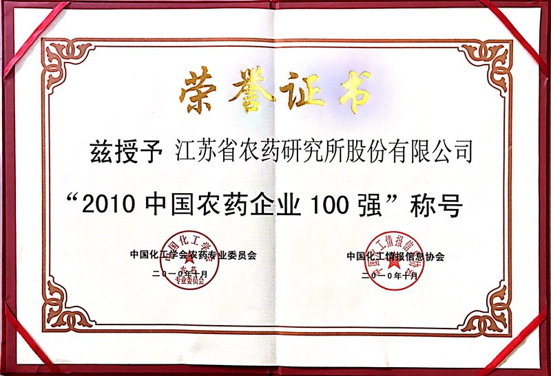 2010.中國化工協(xié)會“中國農(nóng)藥100強”