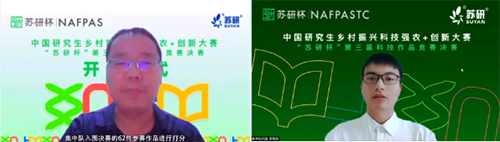 在開幕式環節,中國農業大學黨委研究生工作部部長、研究生院副院長宋岳鎮介紹了蘇研杯賽事情況。中國農業科學院農業質量標準與檢測技術研究所研究室主任陳愛亮,江蘇大學碩士研究生羅育森等分別作為評審專家代表、參賽選手代表發言。